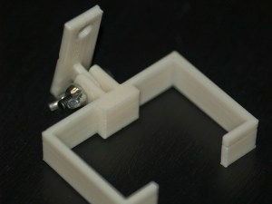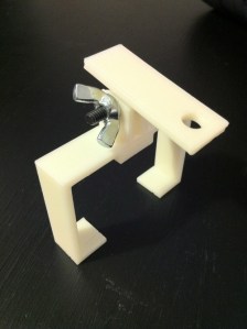 Other than weekends, I only make trips to our studio where my Thing-o-Matic lives every so often. If I get tied up with life, my 3D printing plans can fall behind. Such is the case with a project I’ve had on my plate for a few weeks now: the pico projector holder bar I talked about before. Well this past weekend my plate was empty so it was a good weekend for lots of 3D printing. I managed to get the other bracket — the actual piece that holds the pico projector — printed, modified, and printed again. And I learned some things in the process.