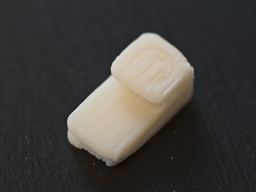 You might see that there is a small logo on the item. It is a pair of headphones merged with an iconified version of a shirt. I figured that if I’m testing one dimension of tiny, why not test two by seeing how an embossed design looks at this resolution. In all honesty, I’m surprised it showed up at all! It’s certainly not as distinct as if it were on a injection-molded plastic piece, but for a home 3D printed piece, it’s not horrible.