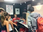 I mentioned that there was one 3D printer that was made from scrap wood. When the gentleman brought it in (sadly, I forget his name… Adam, Andy… Bowers, Bowden… I really need to carry a notebook), folks had a “what is that?!” moment, but also were immediately drawn to it and started asking questions. Basically, it was a couple of long slats of wood with some smaller pieces glued together to hold the motors, some metal tubes to let filament through, and two telescoping arms that held the printhead at the end. The DIY-ness was apparent, with large chunks chiseled out, a mass of electronics screwed onto one of the slats, and pieces of tape here and there, but the ingenuity outweighed any lack of woodworking craftsmanship. π