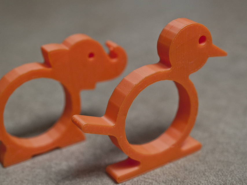 1. The first thing I thought of when I saw your files on Thingiverse was how similar they were to some “cheater chopsticks” that we have. You could print some to use in conjunction with your napkin rings next time you have Chinese (or Japanese or Thai) 😉