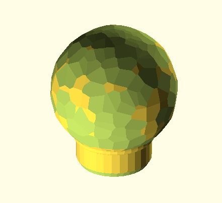 If you really think about the object, it is a joining of a few very simple pieces: a sphere, a torus, and a few cylinders. These are the types of objects OpenSCAD can create in its sleep. The tricky part was going to be the random-like variations to the sphere to make it appear non-uniform and “hand hammered”.