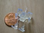 Given previous printing results, I decided to run the test printing at .025mm layer height using the gray resin setting. The gray setting has a tiny bit longer exposure time, due to the pigment. When used on the clear, it seems to make smaller items work better.