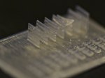 Next we have the walls — these are short segments 5mm long by 5mm tall with just the thickness varying. All of the walls below .25mm thick didn’t print at all. Well, you can see where the laser hit the layer below, but it wasn’t long enough to cause resin to form (oddly unlike the poles).