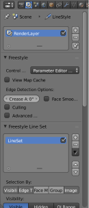 In the Render Layers panel, you will find several new Freestyle-related section. You’ll first want to scroll to the Freestyle Line Set section.
