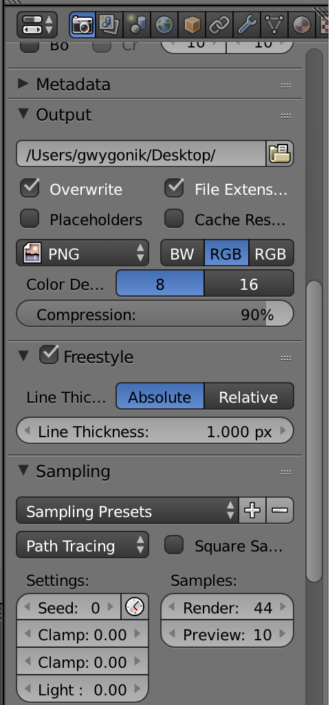 Just above that is the Output section. Change the output location from the default (normally “/tmp”) to some location that is easy to get to. This is where the Freestyle SVG exporter will save your image.