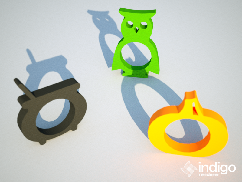 Today I posted three more napkin rings, made for the season: a pumpkin, an owl, and a cauldron; a mix of fall and Halloween. I was trying to work out a bat, but I’m still having issues with the correct wing proportions — the napkin ring would take up the entire place setting! D’oh!